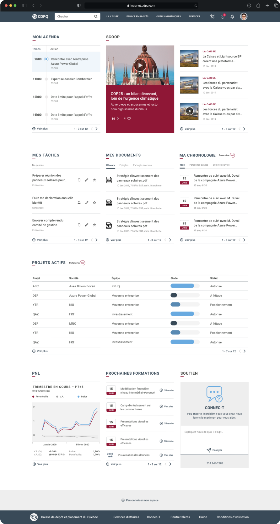 An intranet for an investment organization, centralizing all important information to support faster and smarter decisions.